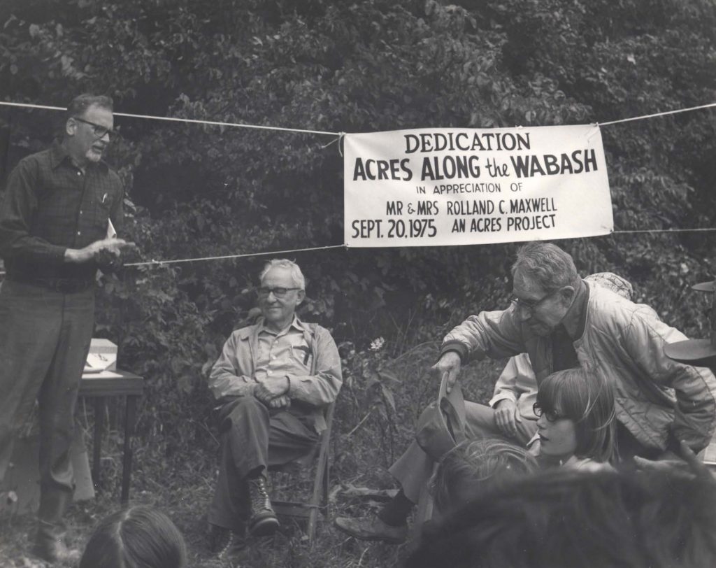 Attorney James M. Barrett III, an ACRES founder, wrote Indiana’s Nature Preserves Act, based in part on similar legislation from neighboring Illinois and Iowa. ACRES founders Tom and Jane Dustin and William and Ethyle Bloch, as well as additional ACRES members and conservation advocates, worked with legislators to secure support for the law. Indiana’s Act was unique in that it allows any land owner to dedicate, or permanently protect, land with the state.