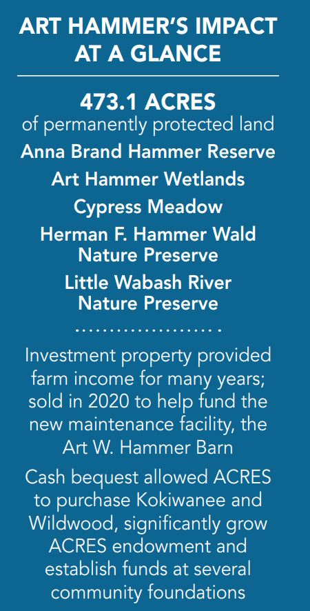Arthur W. Hammer set a fantastic example for individuals and families to come together in reverence for the land, their heritage and legacy. He set a gold standard for gifting and preplanning land into forever care with ACRES Land Trust, for the benefit of all.