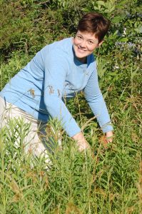Fund Development Director Heather Barth cuts the silvery branches of Autumn Olive on a staff workday. Don’t let her fool you, this is tough work.