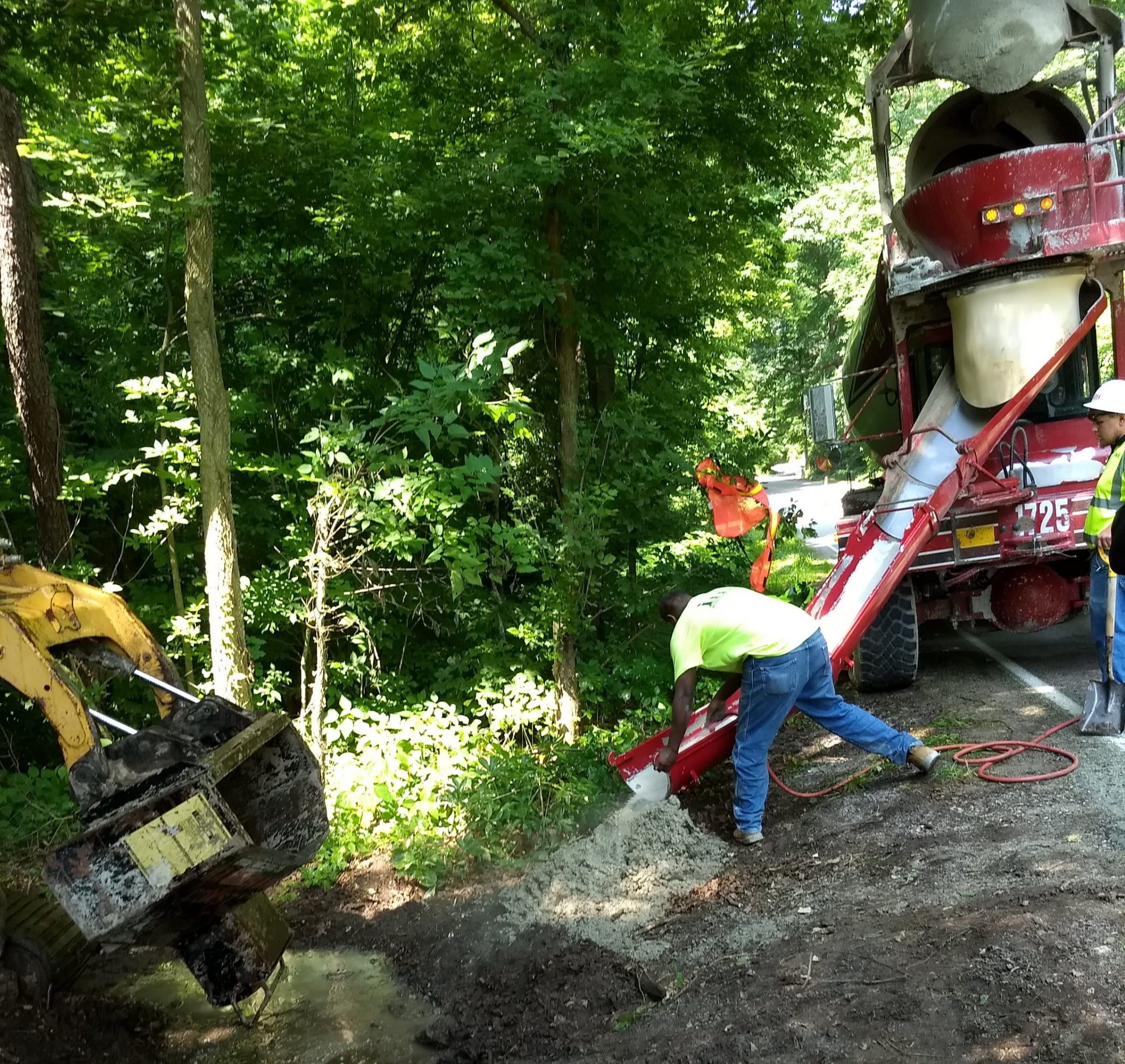 A troop member then introduced Seiler to Chris Harmon of Hagerman Construction Corporation who provided tools and a crew for concrete work, demonstrating the process to the troop before and during the process. Harmon also brought in Cris Mabbitt of Irving Materials Inc (IMI).