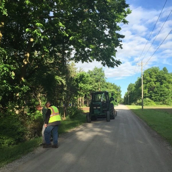 Photo: Rob Biggs, Allen County Highway Department Foreman and Casey Jones, ACRES director of land management coordinate fight against Japanese stiltgrass. ACRES Land Trust is coordinating with land management partners ...