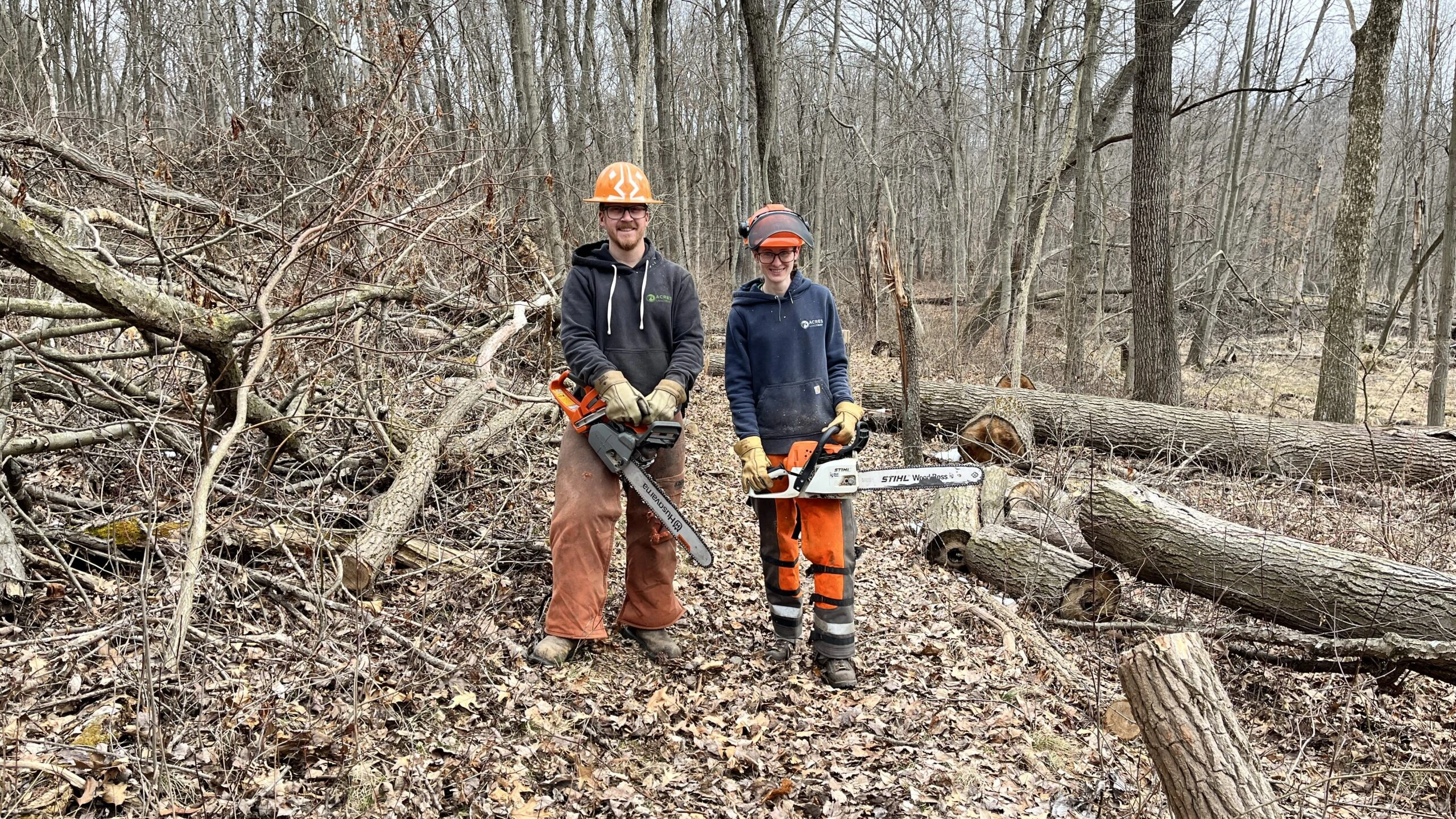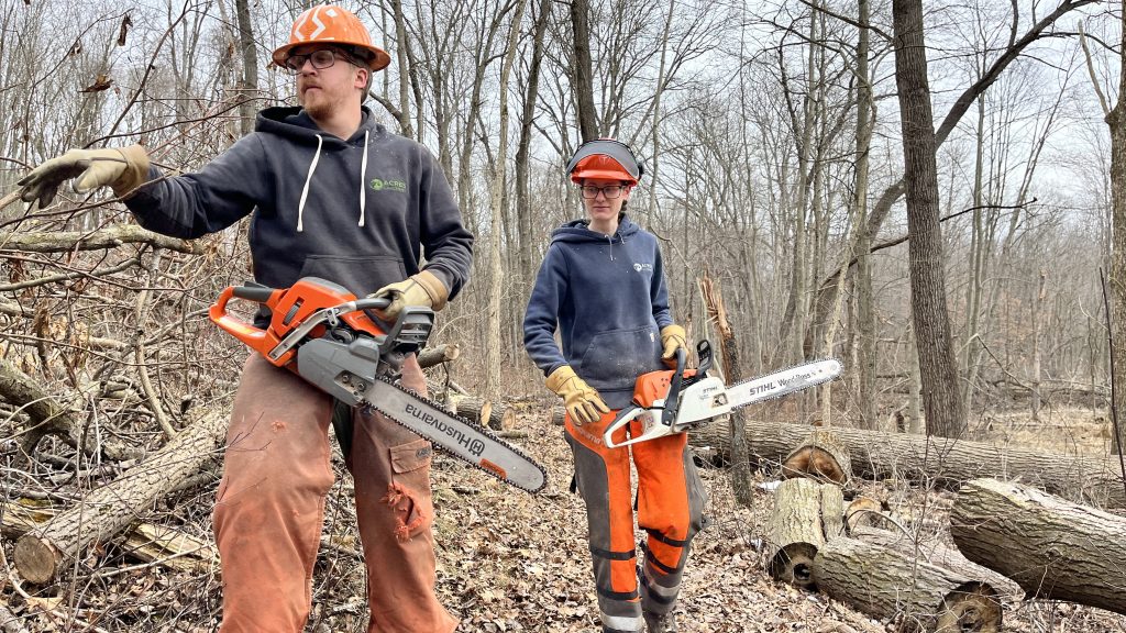 In ACRES nature preserves, selective thinning takes place where historically, there would have been less canopy cover and a more diverse understory, such as an open oak woodland or oak savanna. After non-native invasive species management, our stewardship team removes less desirable tree species through girdling. The goal is to return the property to the state in which it would have persisted in the presence of more frequent natural disturbances, such as fire.