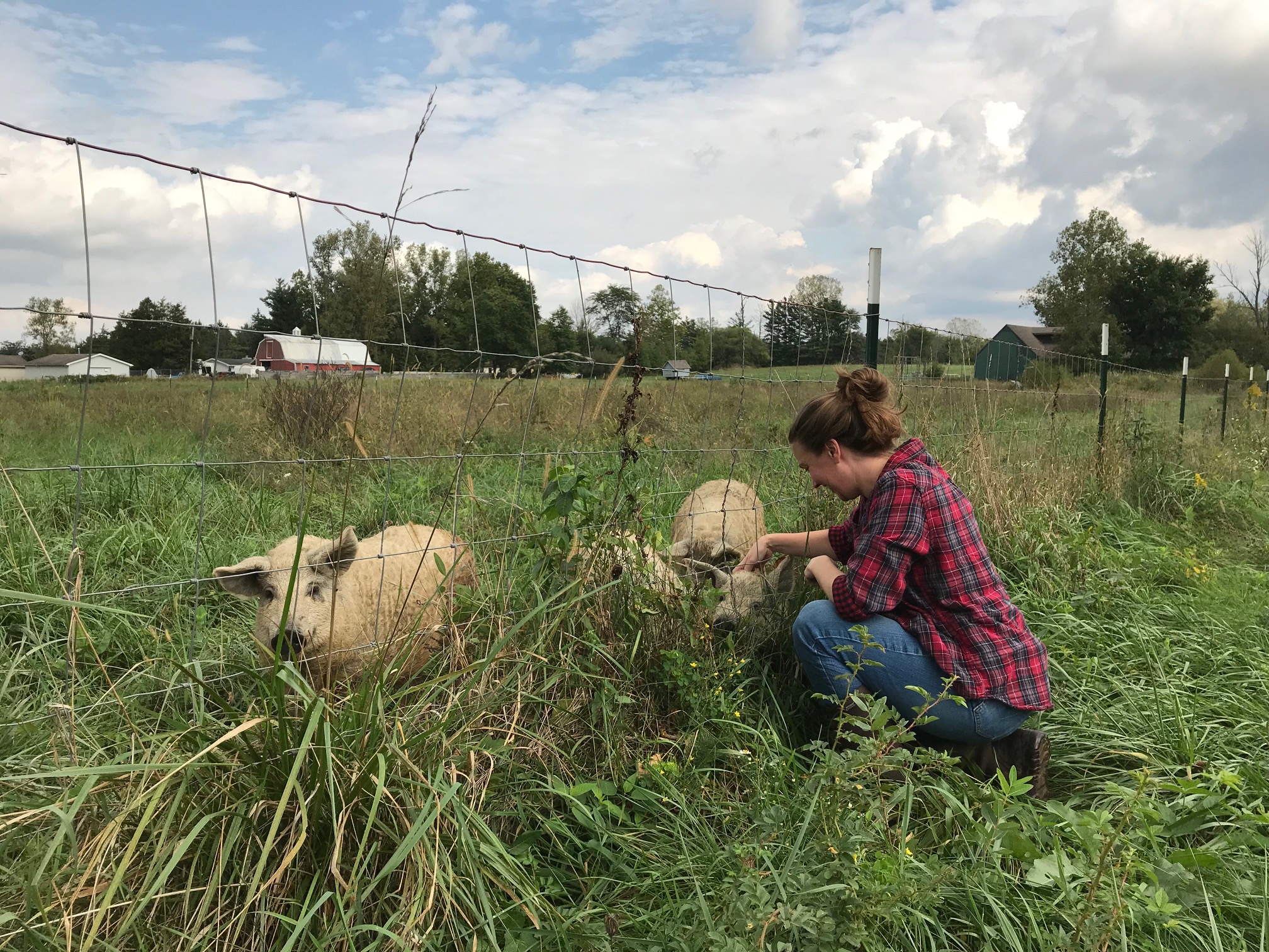 After lunch, we headed north to Huntertown … right next door to the office. We visited Hoffman Certified Organics, a family farm in the Cedar Creek Corridor. The Hoffman Family generously showed us around the farm, introducing us to their much-loved animals: chickens, turkeys and pigs!