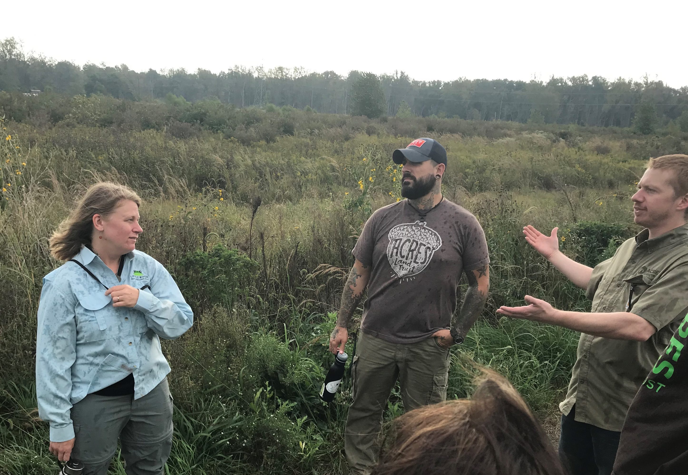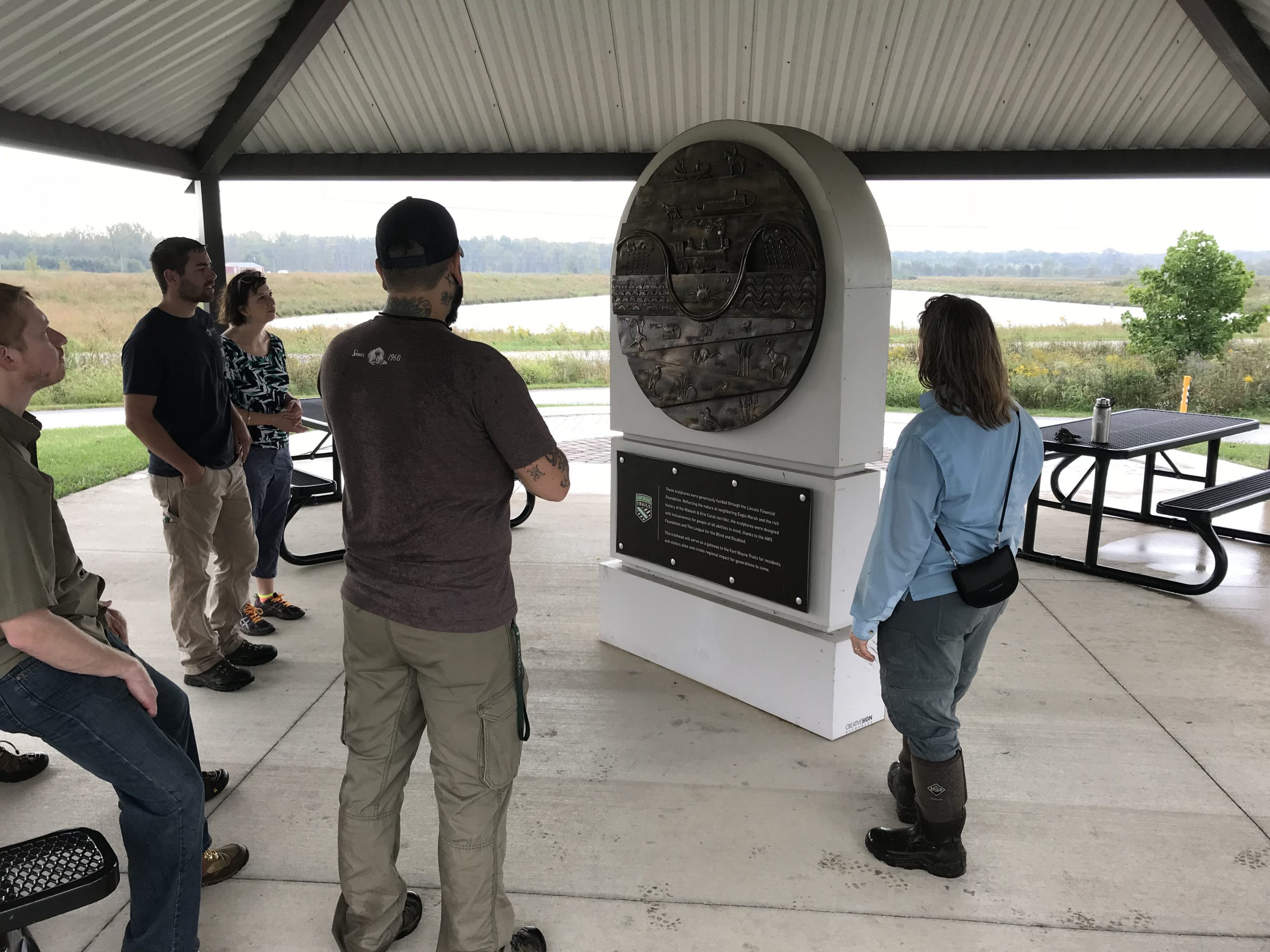 This September equinox, the team headed to the new Little River Wetlands Project office, where Betsy Yankowiak, Director of Preserves and Programs, walked us through the Little River Valley’s geologic and human history, as well as the organization’s history. We talked about managing land in a high-impact urban setting, and we learned about the 10-foot berm their team built in Eagle Marsh to keep non-native invasive fish from moving across the continental divide and reaching the Great Lakes.