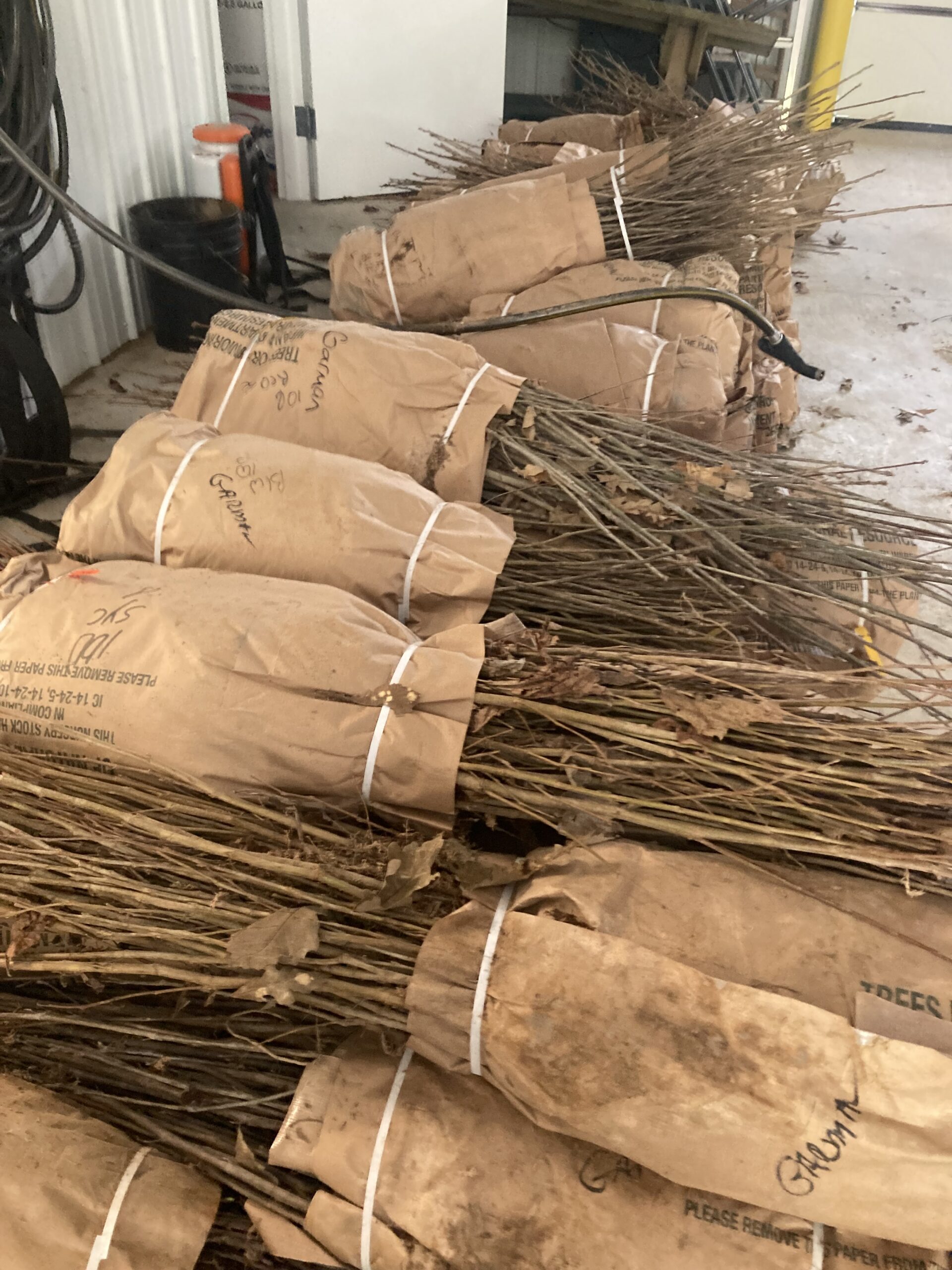 When the plan is finalized, it’s time to order the trees. Most of our trees come from the DNR-managed Vallonia State Tree Nursery in southern Indiana. By ordering through the DNR, we can source local trees native to the area. While we occasionally order from private nurseries, we prioritize planting trees native to the region.
