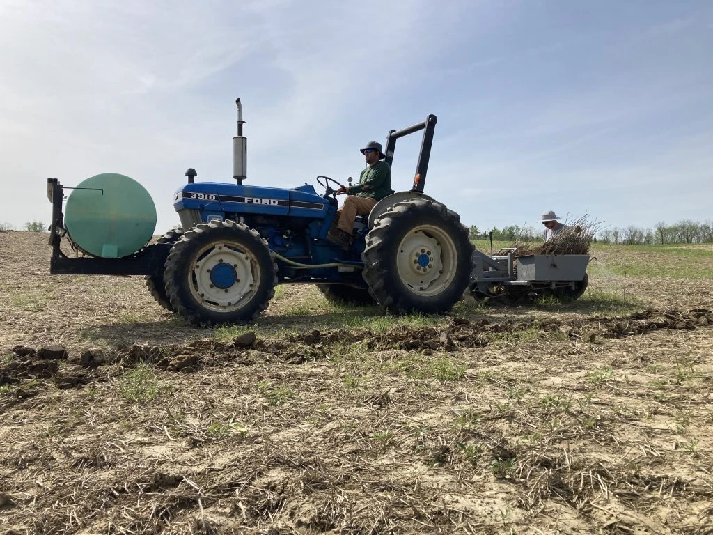 Come springtime, we are ready for the big event — the planting! This is actually the shortest and easiest part of the process. We most often contract out this part. A forester and their team typically come out with a tree planter — a specialized tool pulled by a tractor that plants the saplings directly into the soil. What used to take a person with a shovel several days can be accomplished in a few hours.