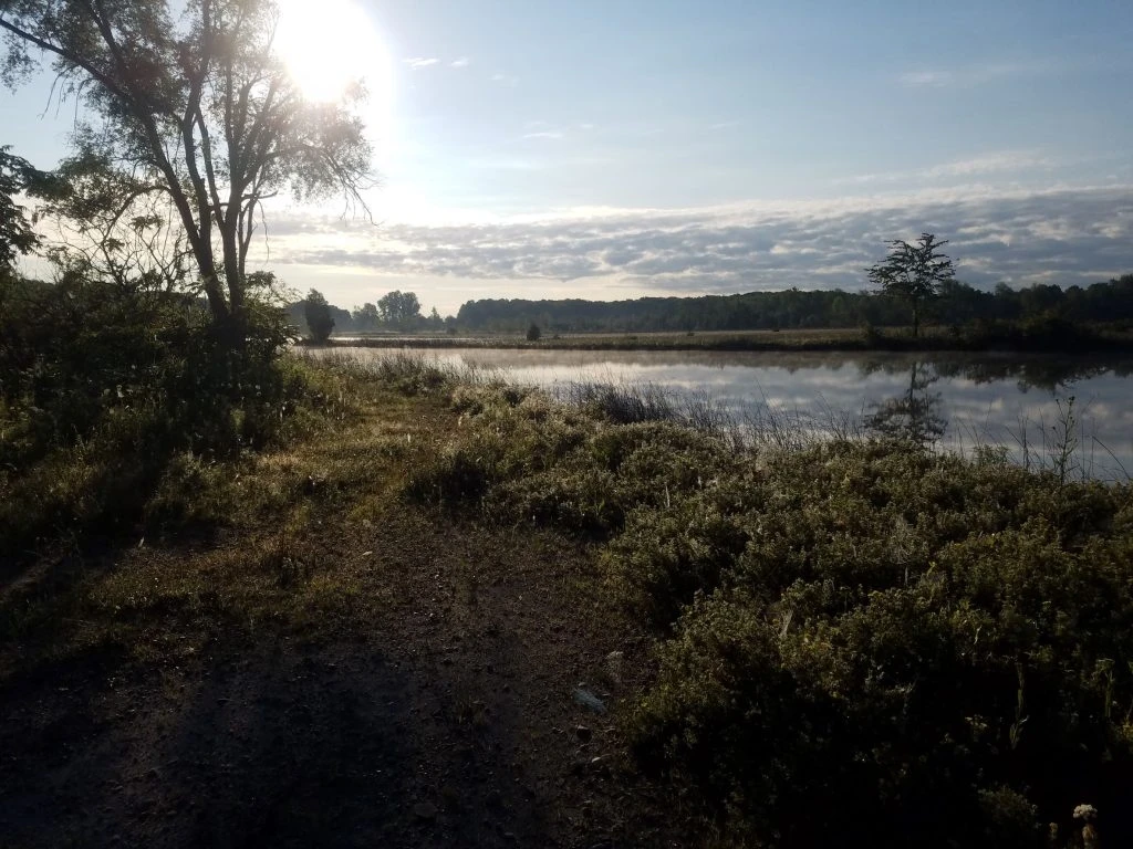 At Grass Lake, the whole area was once covered in water. What remains today is a small lake surrounded by the largest marl flat in the state of Indiana.