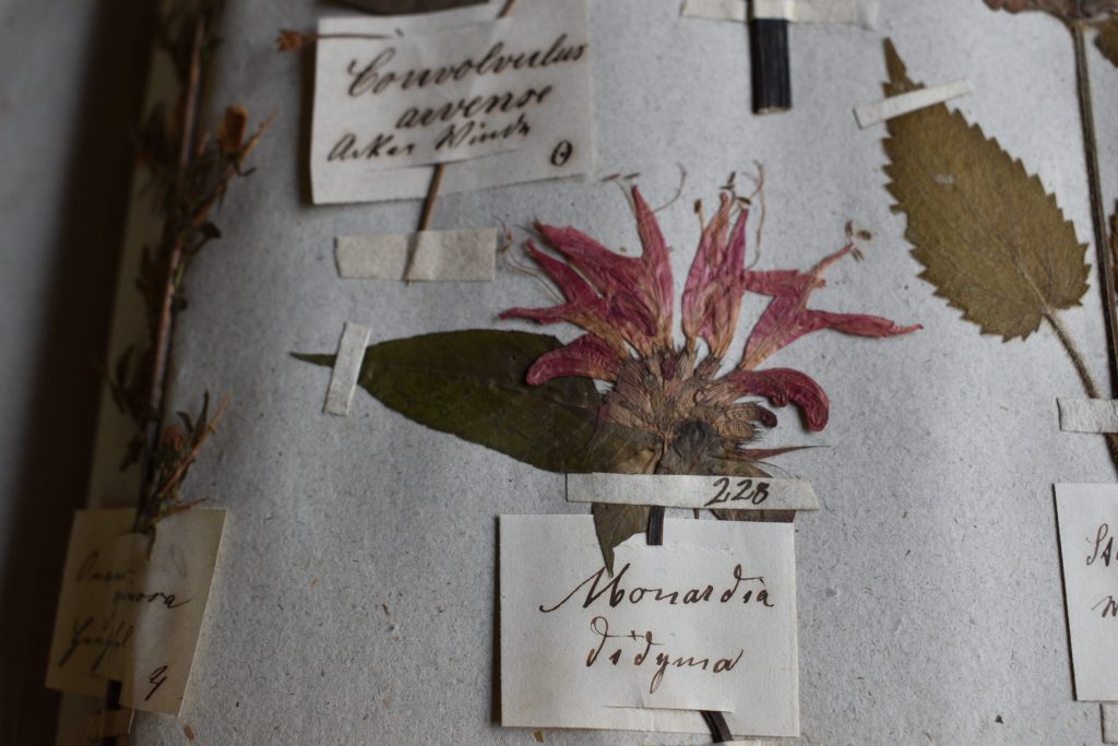 Born in 1839, in Hunteburg, Germany, Detering was about 18 years old when he started his herbarium. On each page he glued from three to seven plants—both natives and some garden species. Today they remain firmly attached, with leaves and flowers flattened out carefully to show them in detail. “The color is surprisingly intact,” said ACRES Executive Director Jason Kissel as he carefully turned through pages in mid-August. Detering’s precise handwriting identifies specimens by their Latin scientific names. (If he wasn’t sure, he didn’t guess.)