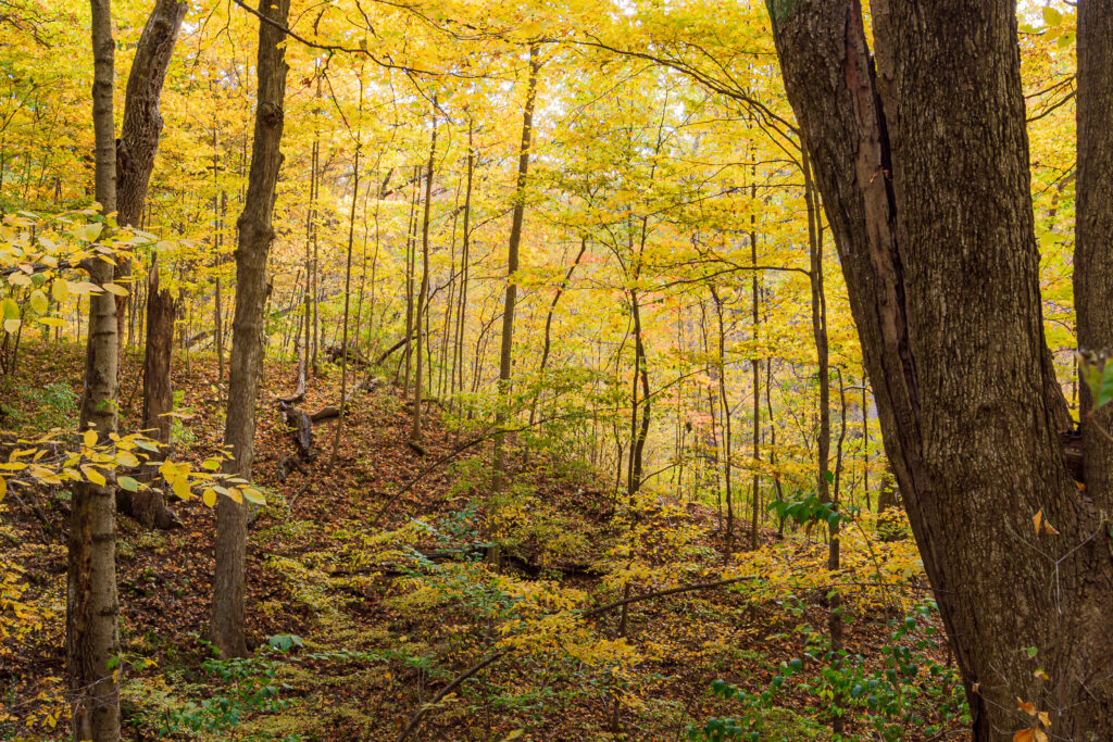 This land is part of the Cedar Creek Corridor, the largest forested corridor remaining in the county. Carved by glaciers, the area’s topography defies what is typical in this region known for its flat farmland. Steep ravines cut through the forest, and much of Cedar Creek flows through a canyon that averages 82 feet in depth.