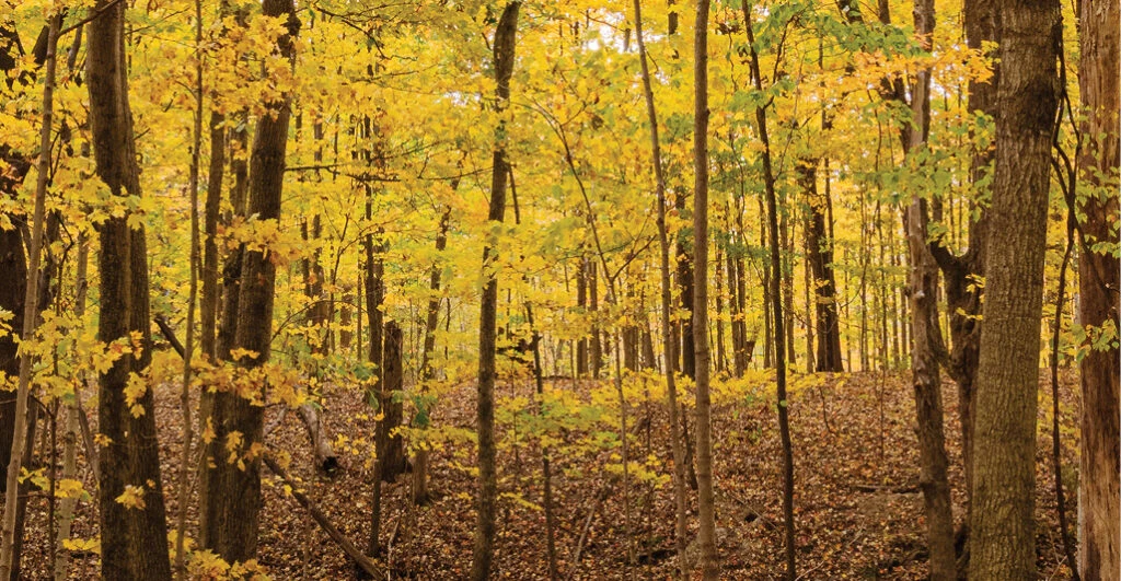 This land is part of the Cedar Creek Corridor, the largest forested corridor remaining in the county. Carved by glaciers, the area’s topography defies what is typical in this region known for its flat farmland. Steep ravines cut through the forest, and much of Cedar Creek flows through a canyon that averages 82 feet in depth.