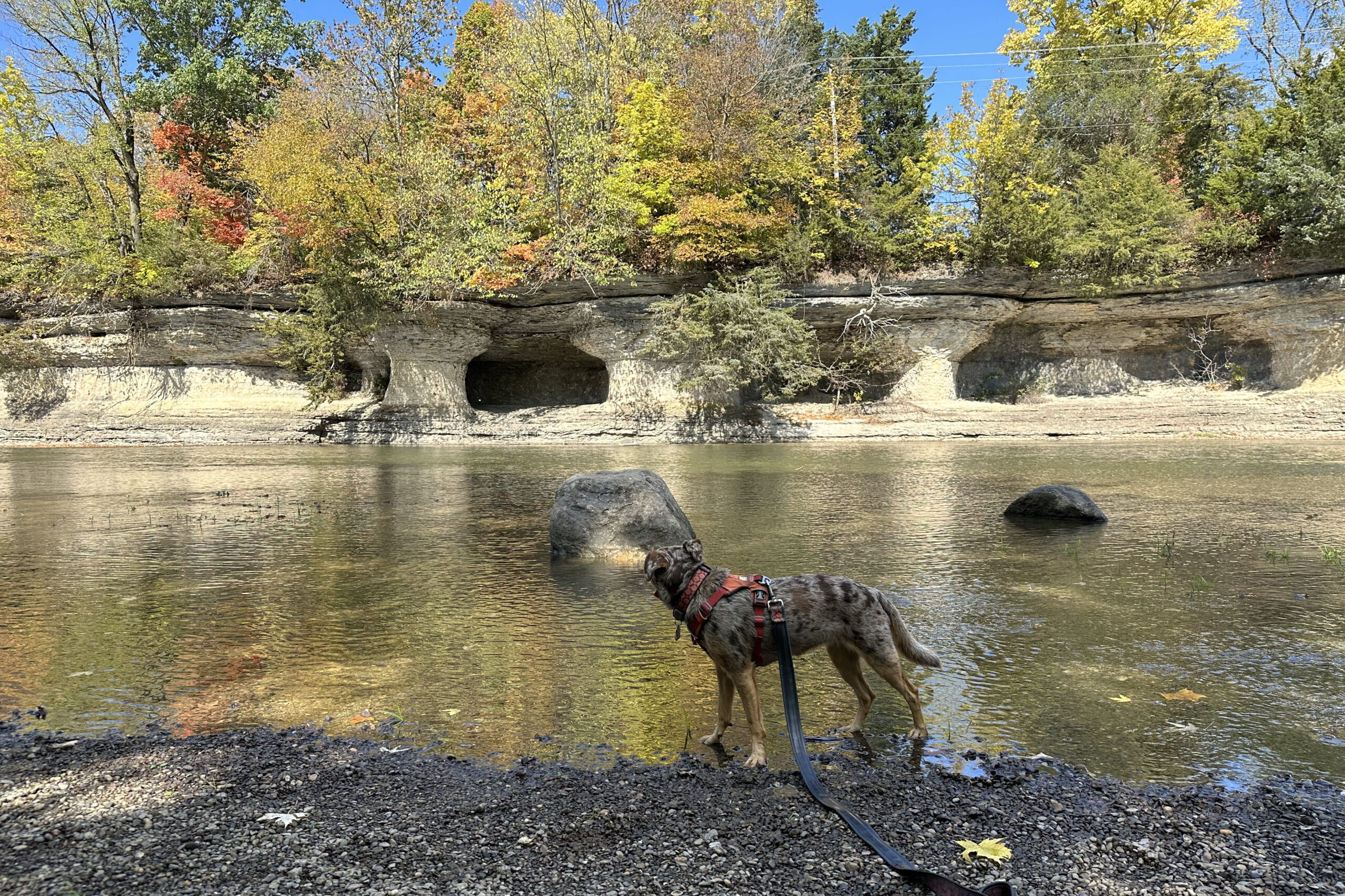 Seven Pillars Nature Preserve ranks highest on LaComb’s “paw scale,” rating 4 out of 4 paws for its challenging hike through woods, a walk along the water and the view of the stone pillars.