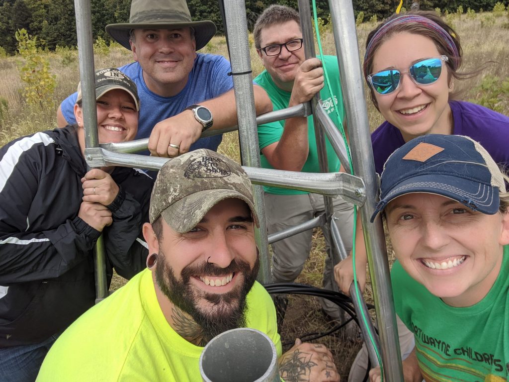 ACRES Land Management Specialist Matt Dunno (front center) poses for a selfie with the zoo crew after a successful tower installation