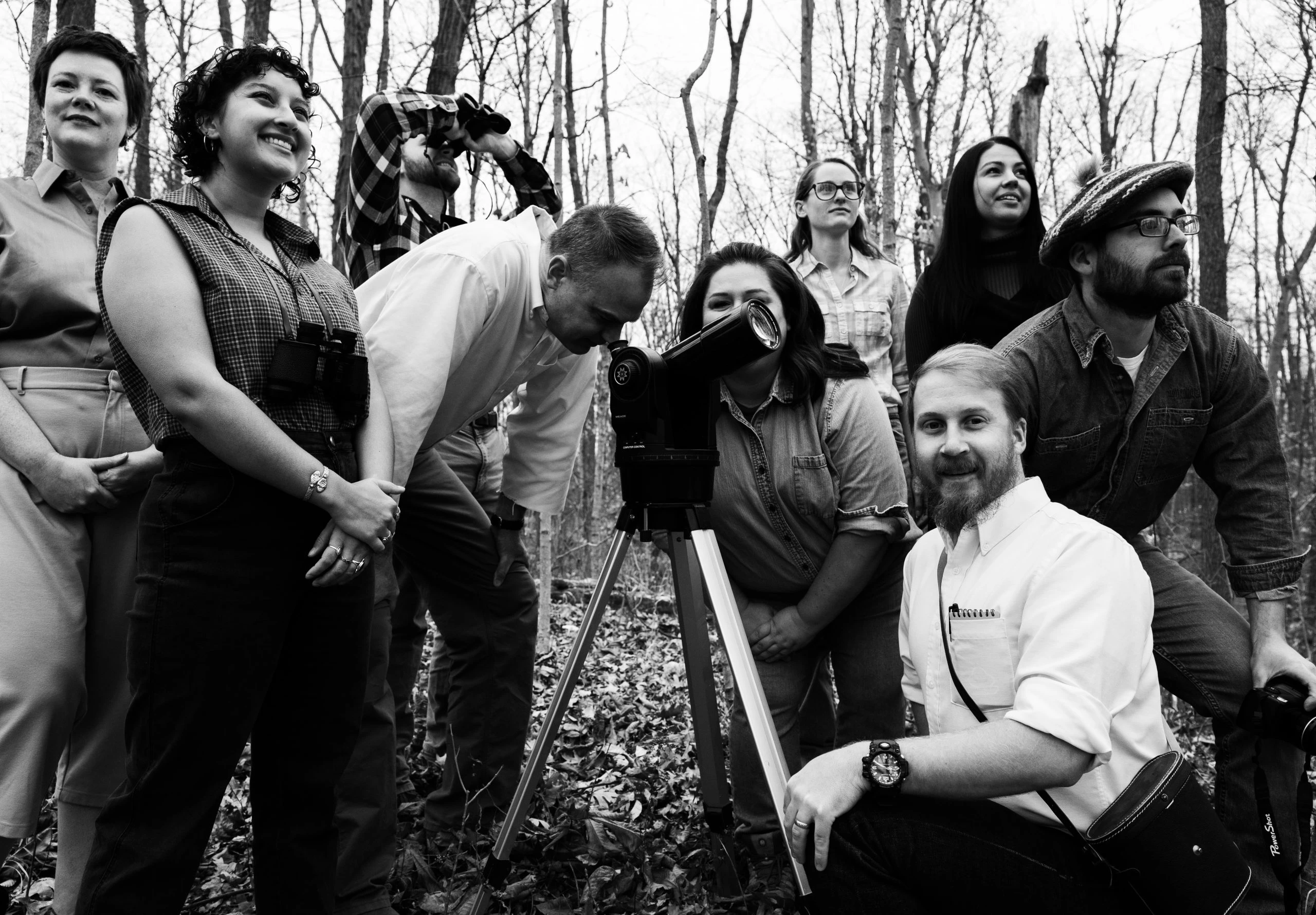 One piece of ACRES history that has been particularly grounding for existing employees is a photo from 1960, the year 12 people founded ACRES by pitching in $5 each to protect local land. The black and white photo captures seven of these original ACRES members. According to a typewritten description, they had spotted a great horned owl in a sycamore tree.