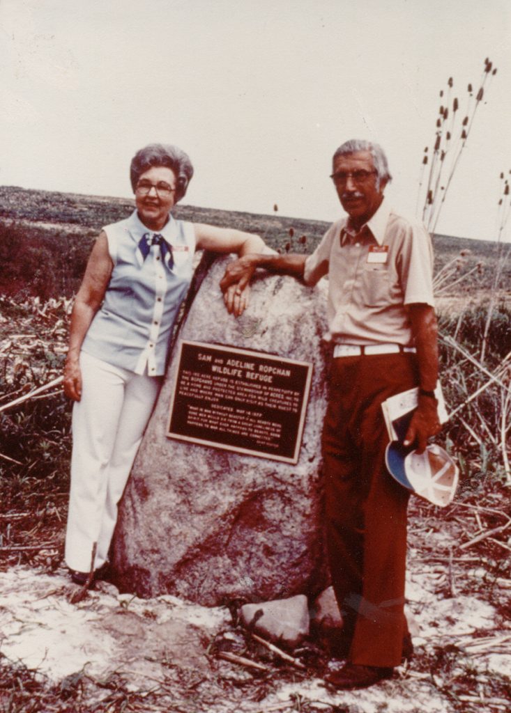 What later became Ropchan Wildlife Refuge was, for many years, a complicated puzzle of multi-purposed, private parcels. But Sam and Adeline Ropchan imagined stewardship of the whole. They believed in the words of Chief Seattle: “All things are connected.” The Ropchans engaged ACRES Land Trust to piece together the preserve by negotiating with individual landowners. Together, they connected the Penner, Skelton, Huss, Wilkins, Carpenter and Smith family parcels. This combination of donations and purchases extended from 1976 to 1982. Indiana approved a Master Plan and dedicated the ACRES land on May 14, 1977. Under the terms of the Wetlands Preservation Act, a Cooperative Management Plan was established between ACRES Land Trust, Indiana Department of Natural Resources, and The Nature Conservancy.