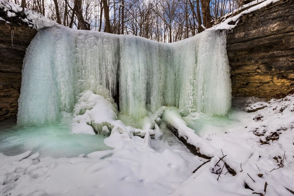 Hathaway Preserve at Ross Run features a spectacular gorge with waterfalls, reef fossils, exposed bedrock and vertical cliffs as high as 75 feet. Ross Run gorge is a unique geological feature shaped by the region’s deglaciation. Diverse cliffside micro-habitats line its steep sides. From a trail running along the top of the gorge, visitors can enjoy the sights and sounds of the creek below.