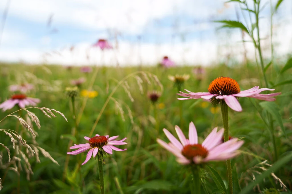 On an early morning visit in springtime, you’ll find the woods alive with the sounds of flapping wings, bird songs and frog calls. Various birds can be seen and heard at Wildwood, from wood ducks on the pond to several species of woodpeckers in the woods, including red-headed and pileated. In summer, the prairie puts on a colorful display of field flowers, including purple coneflower.