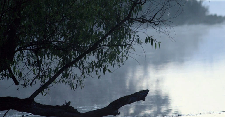 Fog hovers above the water at Ball Lake Nature Preserve