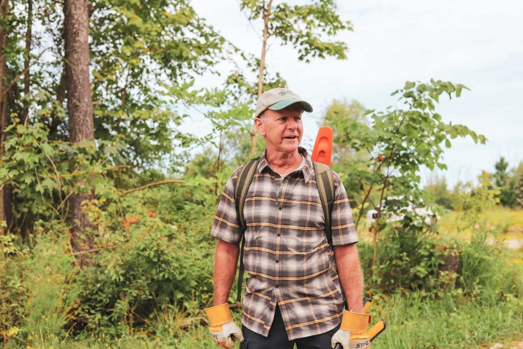 In 2018, just as Kirk was retiring, ACRES put out a call to recruit a new volunteer steward for Hathaway Preserve at Ross Run in Wabash County. Kirk described how he felt this volunteer opportunity was a gift to him at this point in his life. He has since taken on this demanding role with gusto. To keep the preserve welcoming for its many visitors, he spends long hours trimming back thorny brush, mowing and clearing downed trees off trails. He is grateful to the land that he helps protect, relating how the land often takes care of him too. His support of ACRES Land Trust is deeply anchored by his values and his hopes for the future.