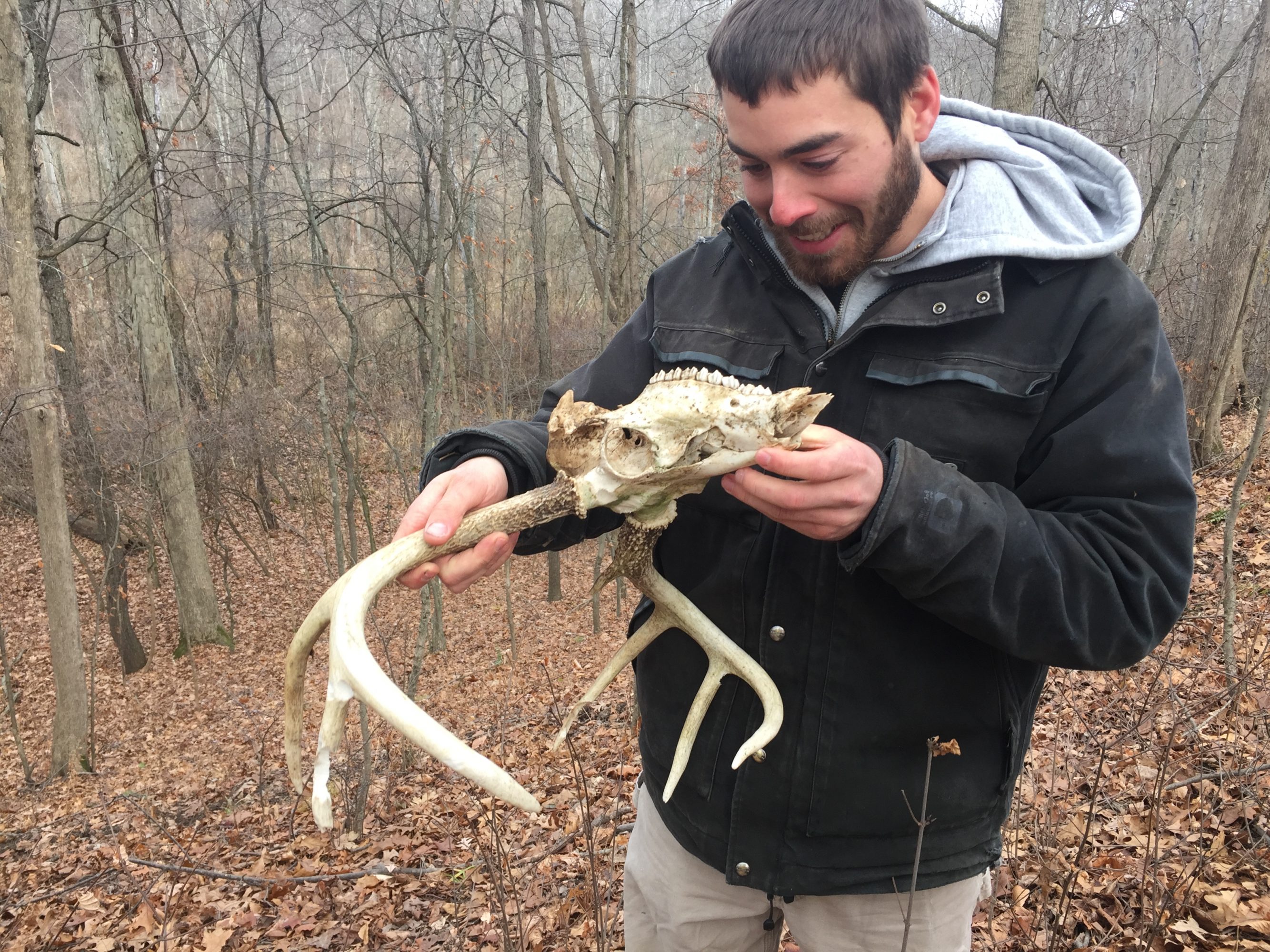 Incredible! Heather spotted this intact skull and antlers and Evan showed us how he would age it.